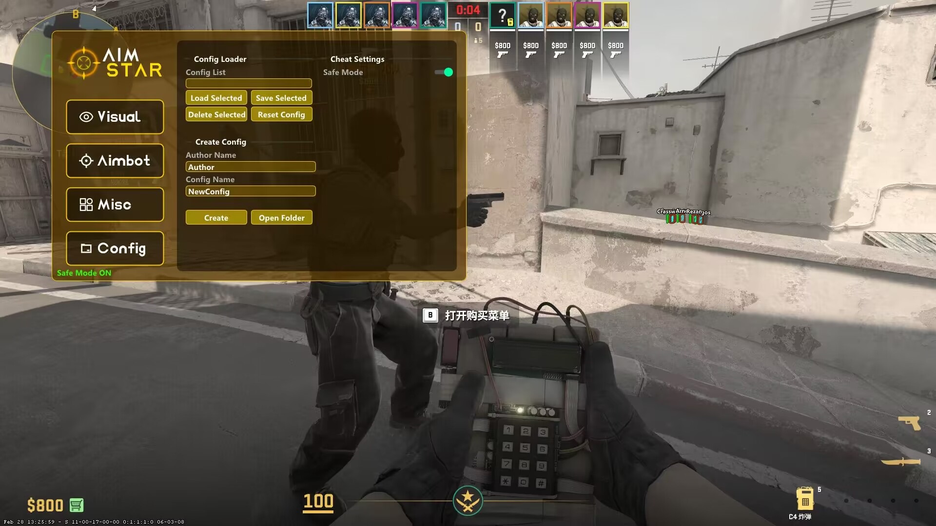 主要功能:自动连跳-快速急停-爆头线-人物血条-人物骨骼透视-平滑自瞄-直播模式-自定义切换自瞄